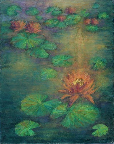 | Among The Lillies, oil on canvas, 36" by 48" |