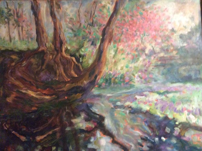 | Red Buds At Martins Chapel, oil on linen, 18" by 24", NFS |